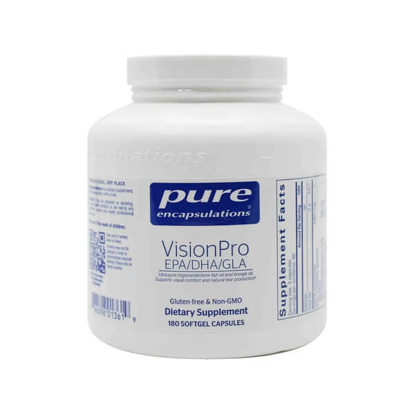 Pure Encapsulations VisionPro Designed to support healthy tear film composition and natural tear production, Pure Encapsulations VisionPro eye supplements are formulated using ultra-pure triglyceride-form fish and borage oil to promote optimal eye health.* Thanks to the supplement’s high EPA, DHA, and GLA contents, it helps support overall eye health by maintaining the fluidity and viscosity of the lipid layer of the eye.* Rich in EPA and DHA, these eye health supplements are designed to support the functional properties of the lipid layer of the eye.* The fish oil supplements also contain 75mg of GLA sourced from cold-pressed borage oil with every serving, thus providing prostaglandin balance and promoting healthy tear film characteristics.*