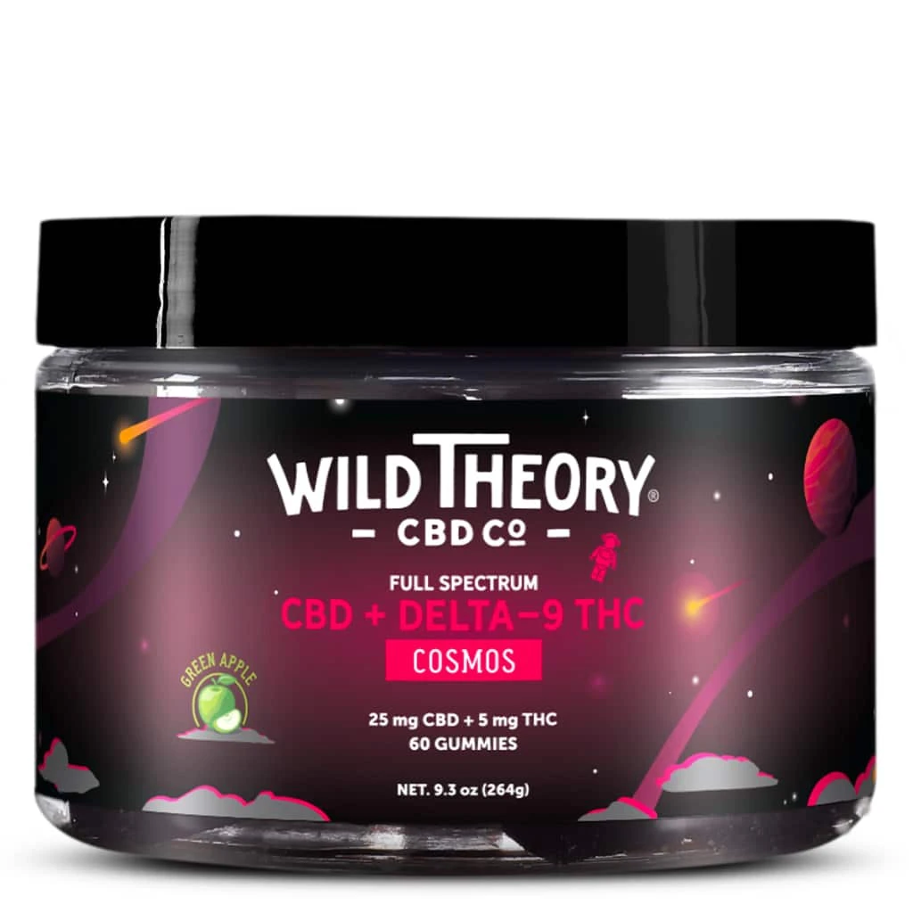 Congratulations — you’re one Cosmos gummy away from total tranquility! Wild Theory Cosmos CBD & Delta 9 THC Gummies are the harmonizing blend your mind and body need to restore balance to your whole system. With a cannabinoid combination as powerful as 25mg of CBD and 5mg of THC, it’s no wonder you’ll experience relief from head to toe.*